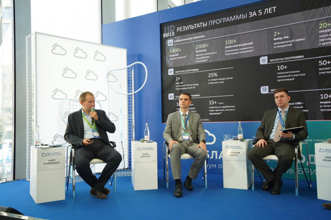 Акселератор Build UP направлен на поиск инноваций в сфере строительств, продажи и эксплуатацию объектов недвижимости. За пять лет через программу прошло более 3 000 проектов, более 2 000 получили экспертизу и были представлены партнерам. Более 100 из них были реализованы в качестве пилотов на стройплощадках и в жилищных комплексах. А экономический эффект от внедрений уже превысил 2 млрд рублей. Причем более 20 проектов растиражированы другими партнерами, рассказал модератор. Среди партнеров программы – крупные строительные и девелоперские компании, включая ДОМ РФ.